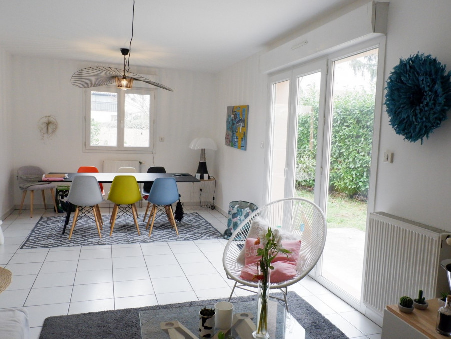 BALMA CENTRE - Au fond d'une impasse, au calme, maison T4 de 94.30 m² , mitoyenne d'un coté, comprenant au rez-de-chaussée, une entrée, une cuisine aménagée et équipée, un séjour /salle à manger lumineux donnant sur un jardin sans vis à vis, un WC; à l'étage, trois chambres avec placards, une salle de bains et un WC. Le bien dispose d'un garage.Chauffage au gaz.